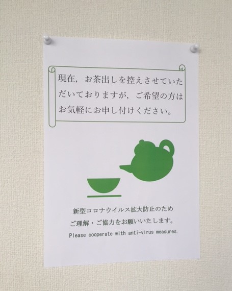その他,お客様へのお茶出しを一部中断させていただいたり,