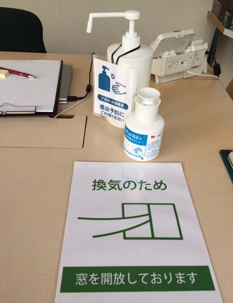 その④:面談室でのアルコール消毒液設置・置きマスク・換気